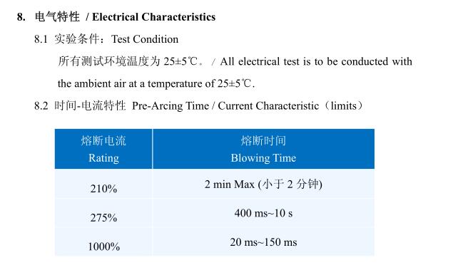 2.1執(zhí)行標(biāo)準(zhǔn):IEC60127-1 IEC60127-3 GB9364.1 GB9364.3