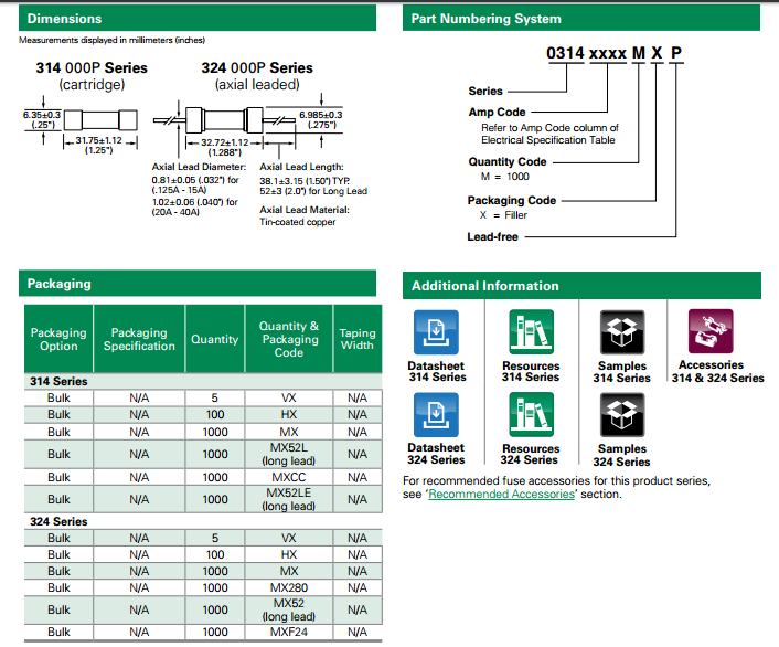力特保險絲314 系列 - 3AB快熔陶瓷管介紹: