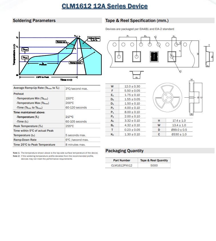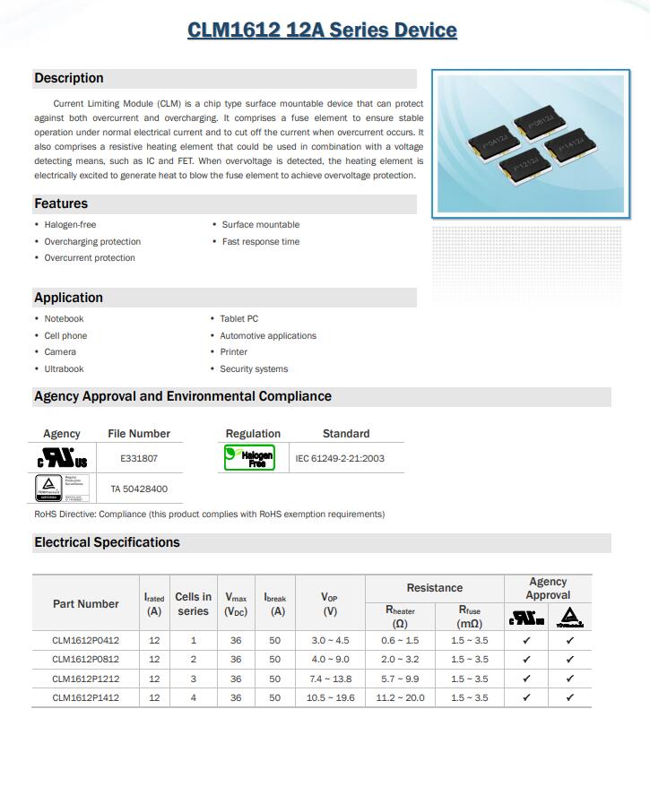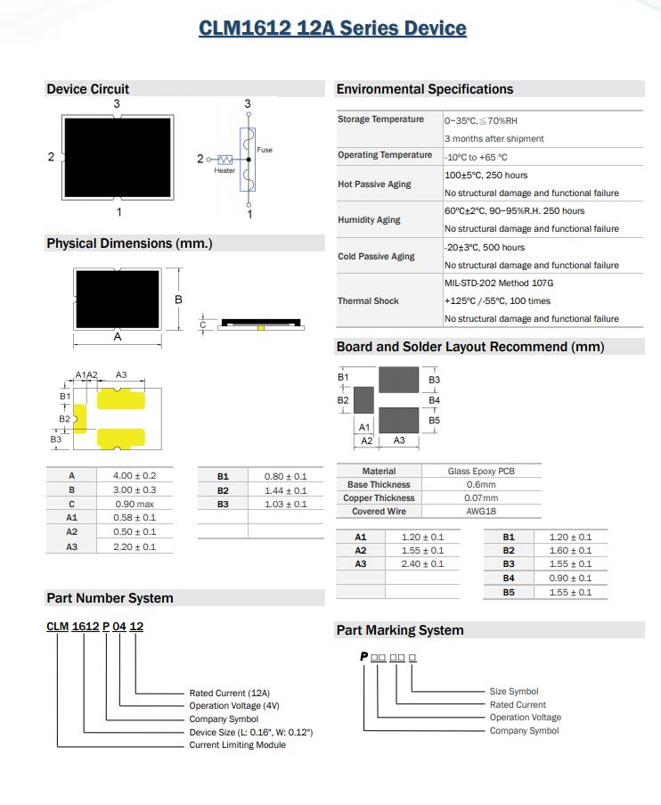 CLM1612 12A Series Device 三端保險絲