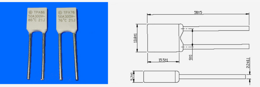 方形溫度保險(xiǎn)絲:TPA,TPB 13.8X5.7X15.5 50A300V