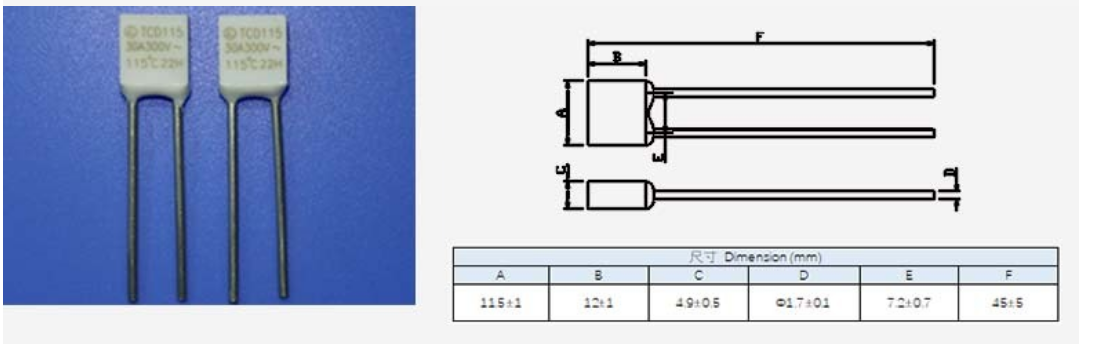 方形溫度保險絲: TCD,TCE,TCF 11.5x4.9x12 20A 30A 300V