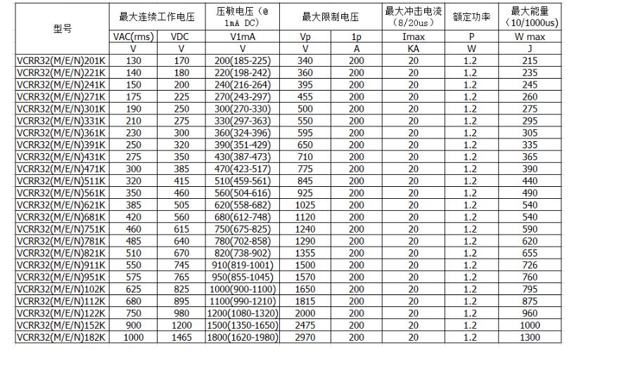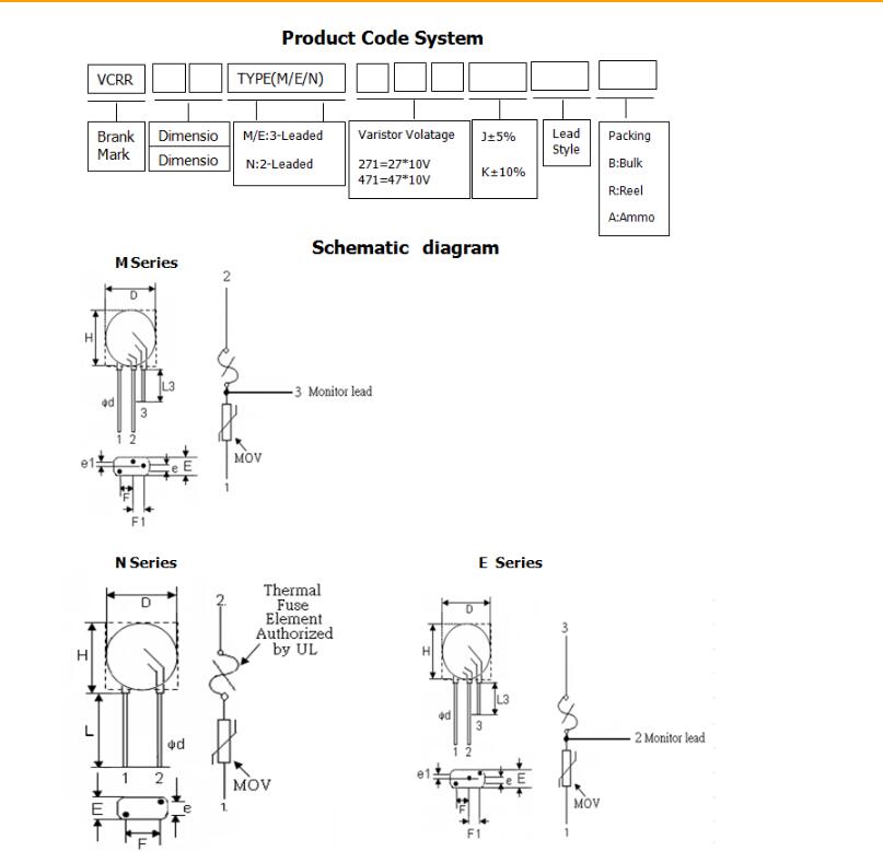 ?壓敏電壓范圍從(200V-1800V) ?符合RoHS,Reach標(biāo)準(zhǔn),無鉛 ?專利的集成熱保護(hù)裝置 - ?旨在促進(jìn)符合UL1449第3版SPD產(chǎn)品 ?高峰值浪涌電流額定值高達(dá)10kA ?波可焊 ?標(biāo)準(zhǔn)引線形式和間距選項(xiàng) ?低泄漏 ?-55°C至+ 85°C的工作溫度范圍