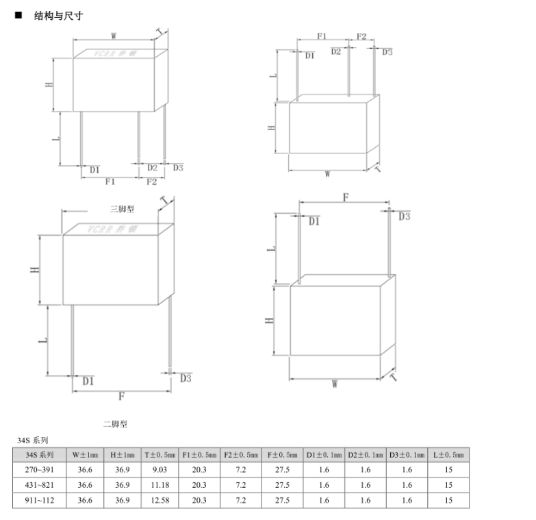 ?壓敏電壓從(18V-1800V) ?符合RoHS,Reach標準,無鉛 ?專利的集成熱保護裝置 - ?旨在促進符合UL1449第3版SPD產品 ?和促進符合IEC62368 ,IEC61643-331產品 ?高峰值浪涌電流額定值高達40kA ?波可焊 ?標準引線形式和間距選項 ?低泄漏 ?-55°C至+ 85°C的工作溫度范圍