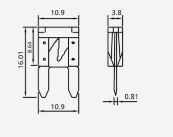 七. 標示:保險片的規格(額定電流)標示,印在塑膠體頂蓋上。其字體不可消失,明顯易見。其不同規格(額定電流)的顏色如下: