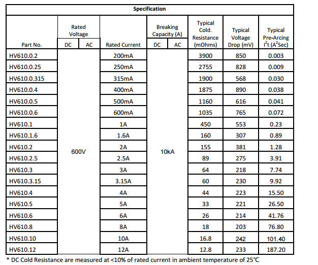熔斷器HV610 600VAC/DC 10KA 100mA-12A介紹: