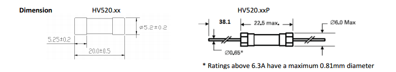 5x20 fuse, according to IEC 60127-2, Time delay fuse.